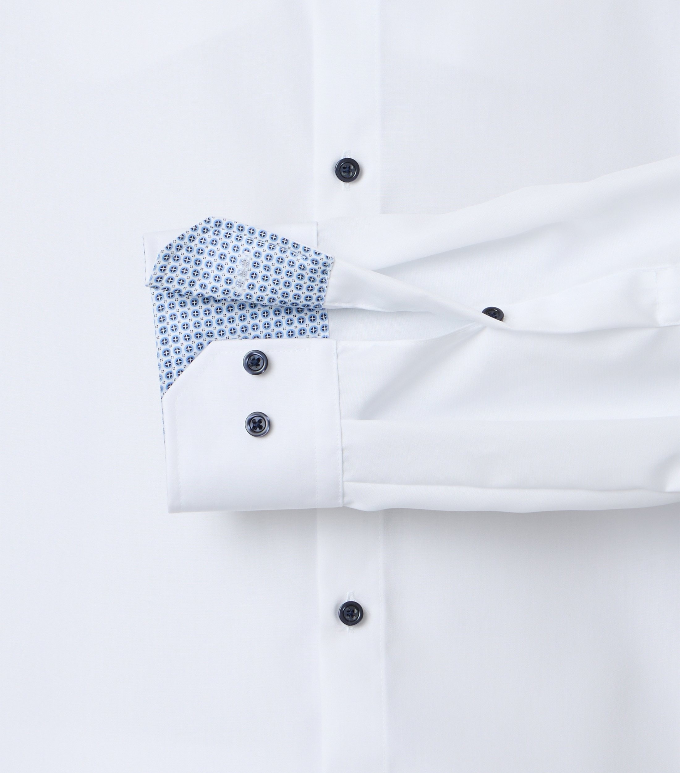 Farbe Weiß-Blau = Weißes Hemd mit dunkelblauen Knöpfen