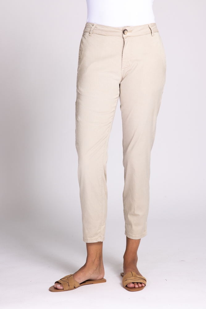 Die ZHRILL Damenhose ZHTILLI in creme beige kombiniert modisches Design mit praktischer Funktion. Die 7/8-Länge, der moderne Slim Fit und die dezente Cargotasche verleihen der Hose einen urbanen Look, der sich ideal für Alltag, Freizeit oder Büro stylen lässt. Mit seitlichen und hinteren Eingrifftaschen, einem Knopf-Reißverschluss und einer doppelten Knopfleiste hinten am Bund bietet die Hose durchdachte Details und eine bequeme Passform. Die hochwertige Materialmischung aus Baumwolle, Lyocell und Elasthan sorgt für ein softes, elastisches Tragegefühl.